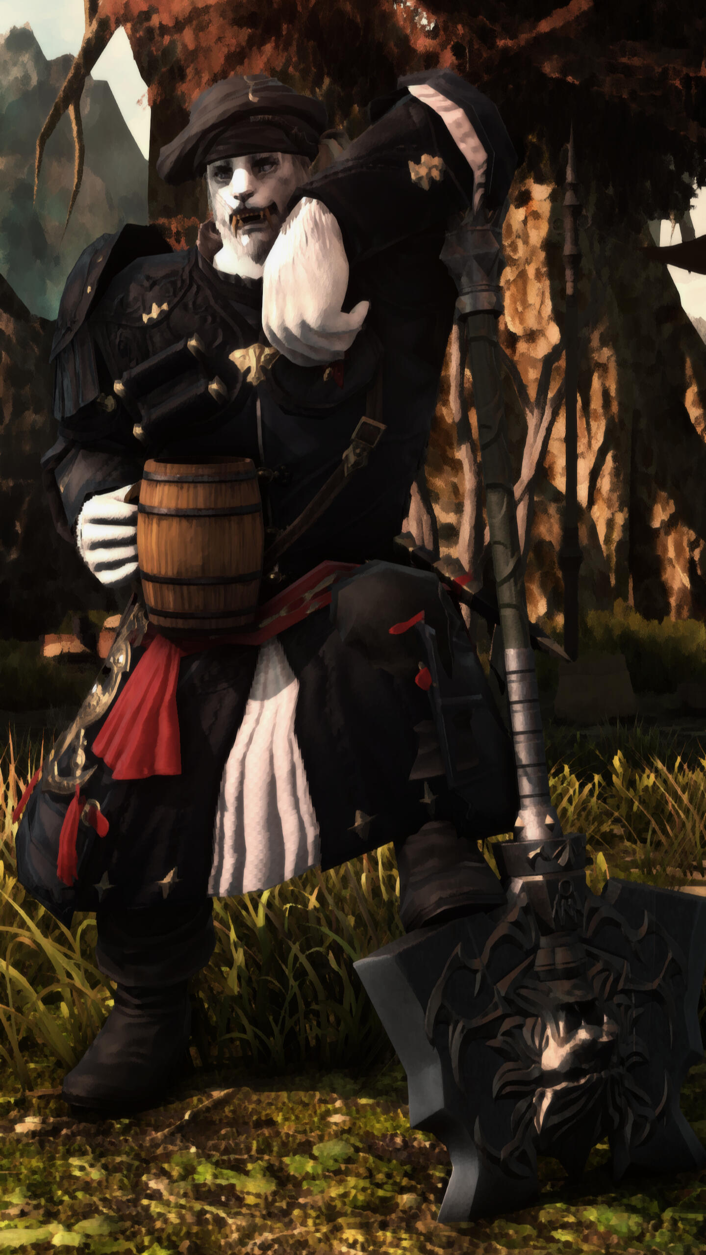Mithgar found his calling to the rebellious and righteous cause of the Eorzean Alliance after seeing fewer Garlean regiments patroling the roads. Bringing his brother Cathgar with him, he sought to make their lands a safer place while the united front liberated the rest of the world.His duty, to help those in need, and to give mercy to even those who would do others wrong. To give them a second chance to correct their ways.However Bozja called her sons home to push the occupied force back to their lands until the thought of rebuilding can manifest.Now, he tends to the local area of Coerthas as he now focuses his efforts in arming future adventurers with his shop the Mythril Claw, and help his fellow tradesmen in rebuilding their frozen jewel.
